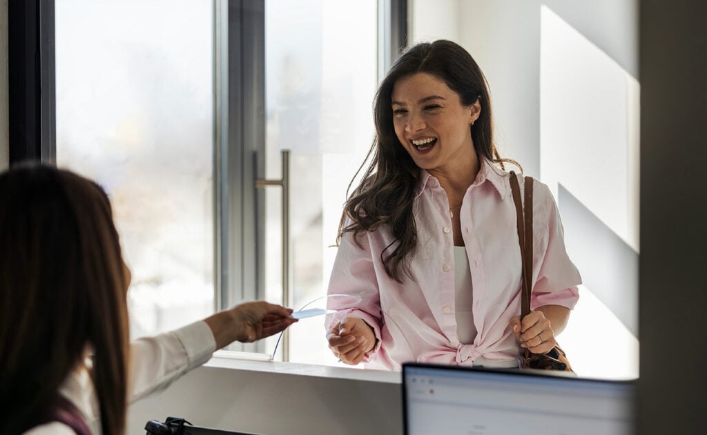 - The second is speed: a check-in process that requires manual data entry slows down arrival, creates a queue at reception, and leaves visitors standing at the desk longer than necessary.