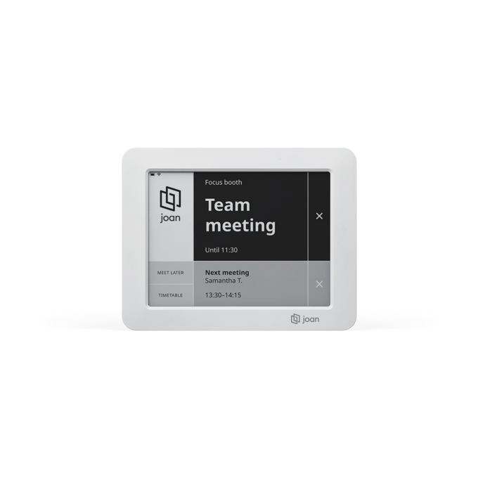Say goodbye to meeting interruptions with this E-paper conference room booking display that syncs with your calendar to show real-time room availability. Reserve a room via your calendar, instantly through the device’s touchscreen, or conveniently through the Joan mobile app.